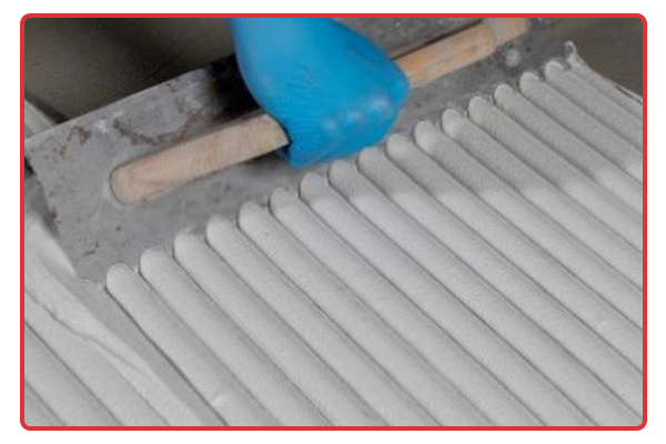 Apply Tile Adhesive on the substrate using a notched trowel in order to achieve